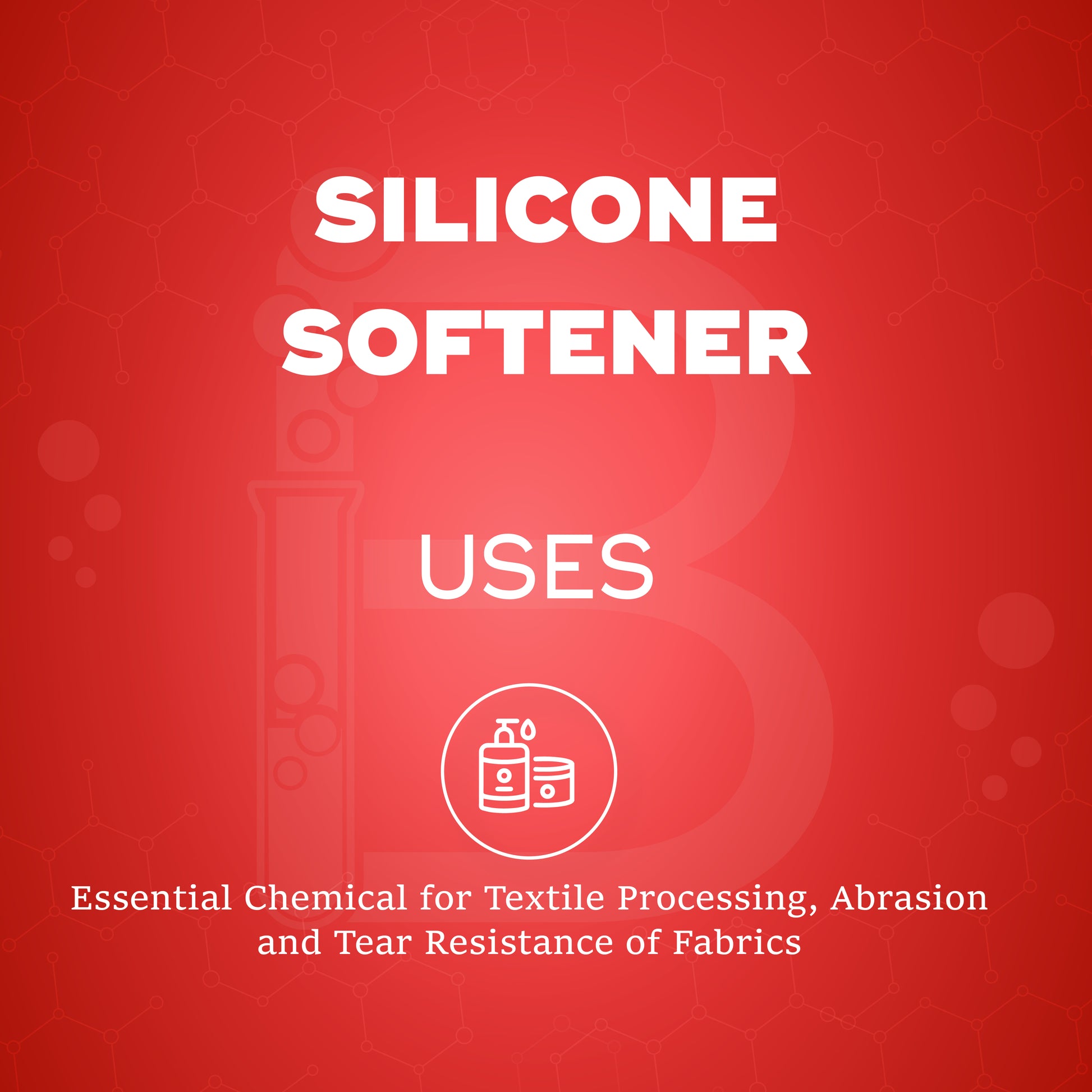 Silicone Softener is one of the most essential chemicals in textile processing. This product is mostly used for better softness and abrasion resistance of fabrics, mobility of fibres, tear strength, soiling resistance and static protection. It is also believed to decrease yarn and fabric tensile strength by reducing fibre cohesion, reduce sewing thread breakage, pilling as well as flammability.